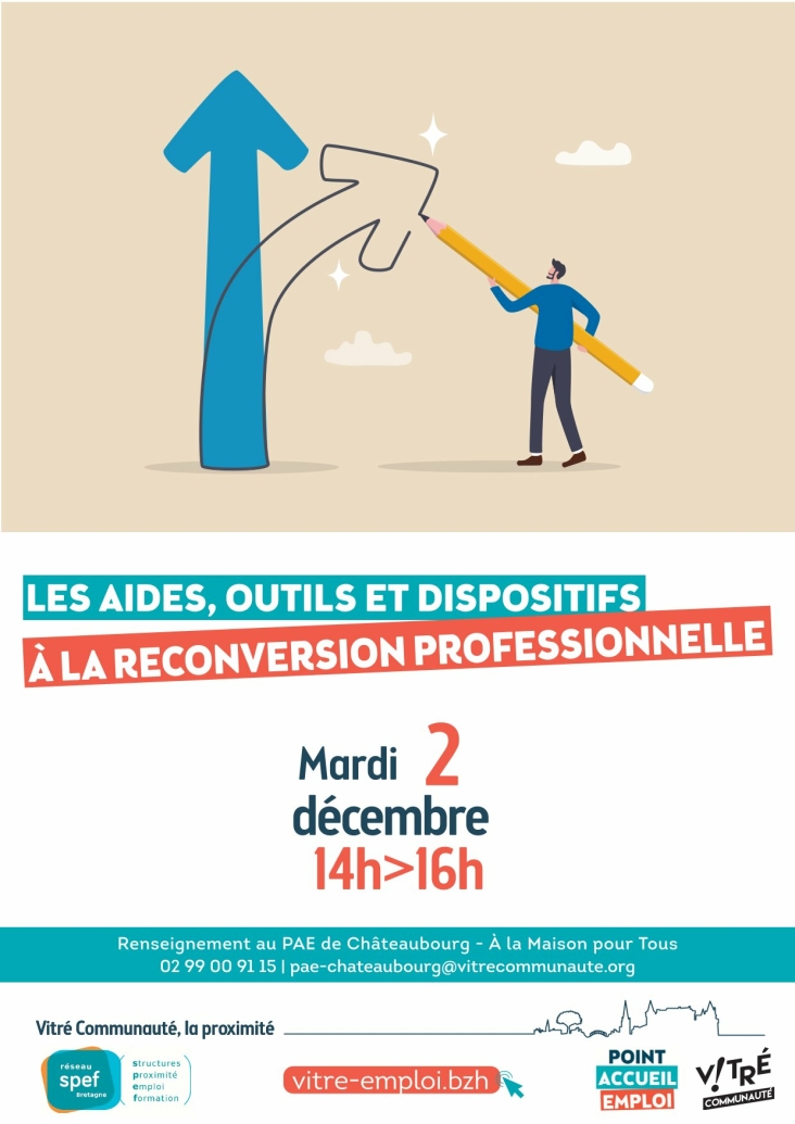 Une présentation des aides, outils et dispositifs facilitants une reconversion professionnelle est prévue :